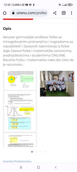 Iskusan Gimnazijski profesor dobitnik mnogih republičkih i Saveznih nagrada iz fizike daje veoma uspešno časove fizike i matematike ONLINE preko vibera ili googl meet-a. Imam grafičku tablu tako da sve što pišem i crtam Vama to izlazi na ekran i to Vam snimim i pošaljem. Naučite fiziku i matematiku lako, tako što ćete da je razumete. Tel. 063/602-301 Kvalitet mog rada dokazuje uspešnost mojih djaka na takmičenjima iz fizike, ove godine se plasiralo 15 mojih djaka na državno takmičenje iz fizike iz svih razreda Gimnazije koje će biti održano u Vranju, što je rekord u Srbiji.....